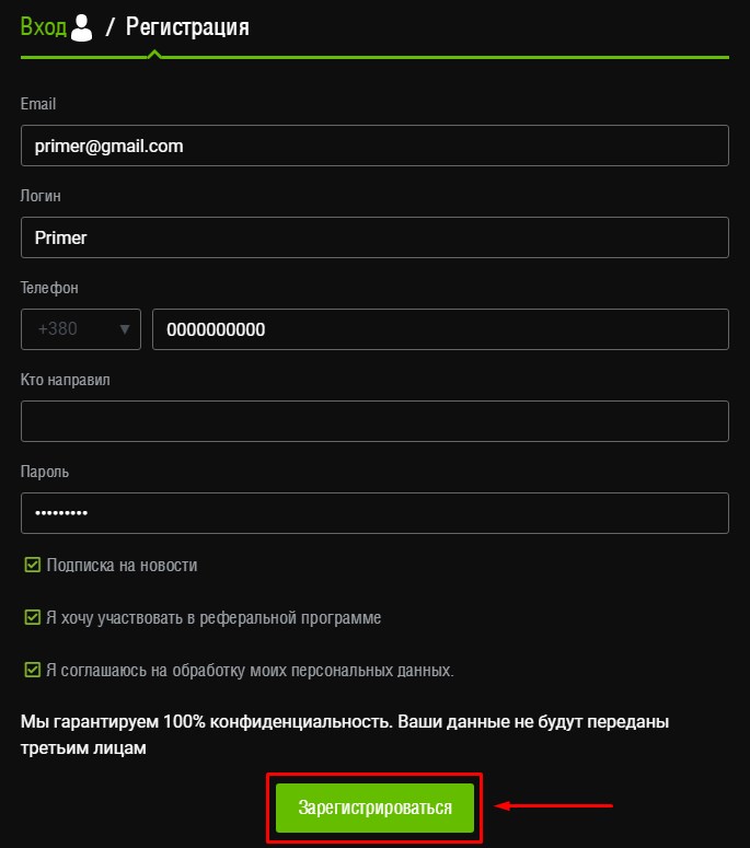 If you chose "Register," fill in the necessary details and check the boxes in the lower fields to participate in the referral program.
